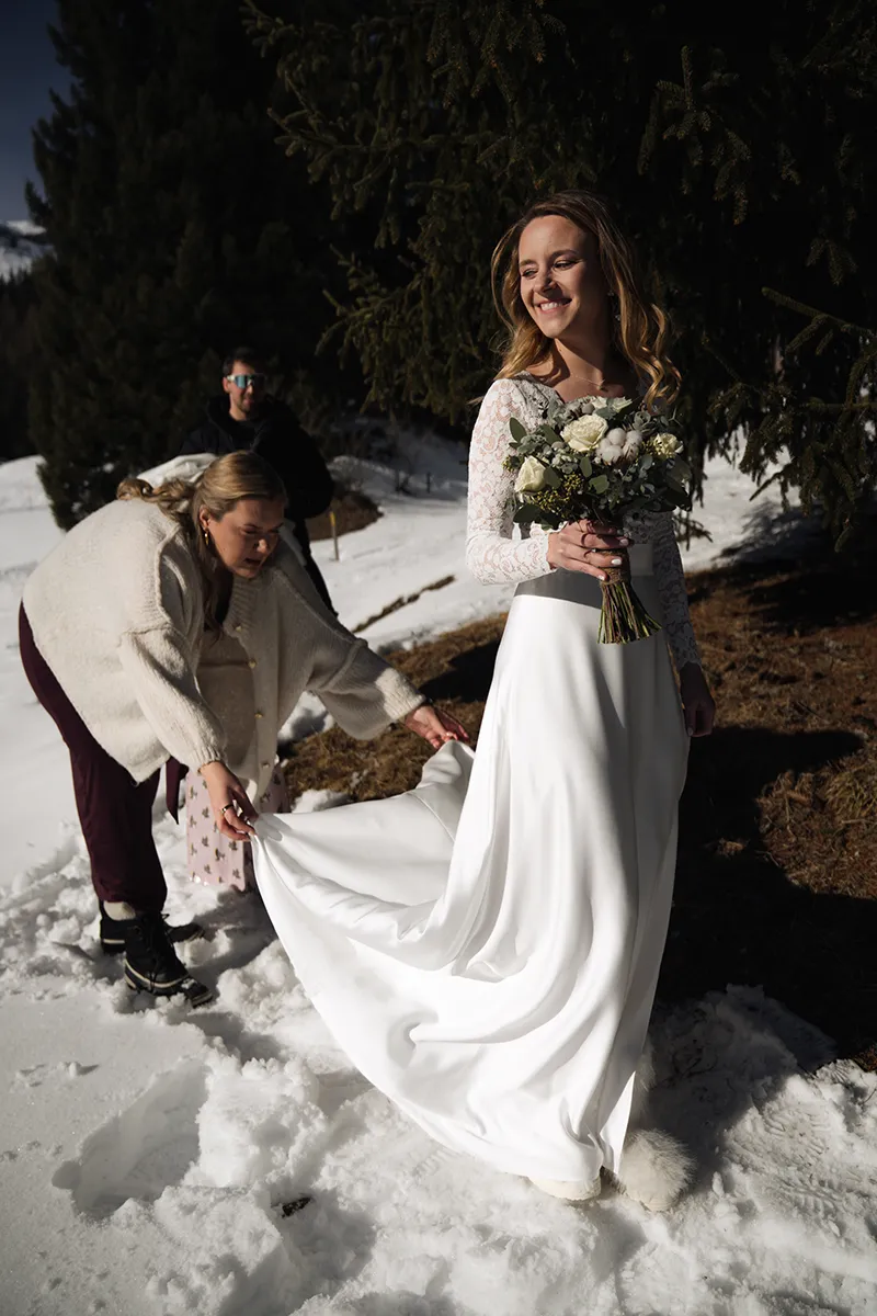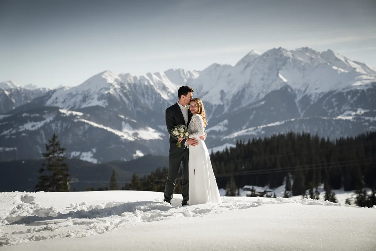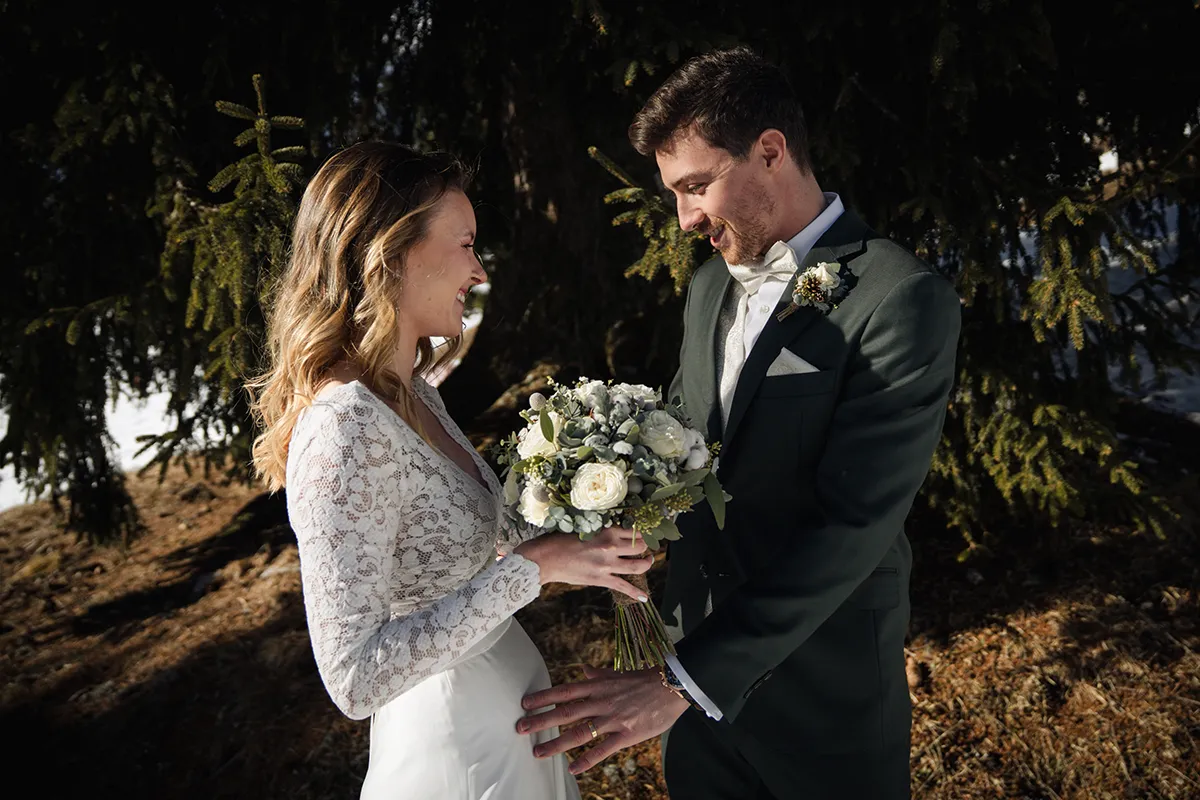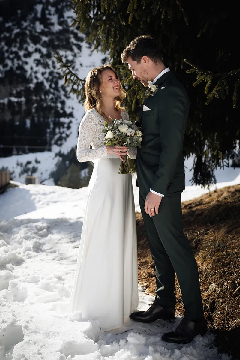 Das Skigebiet Flims Laax verwandelt sich im Winter in eine Bilderbuchkulisse. Tief verschneite Wälder, klare Bergluft und das besondere Licht der Alpensonne – dazu eine Gondelbahn-Anfahrt für die Gäste. Winterhochzeiten sind seltener als Sommerhochzeiten, was ihnen automatisch etwas Exklusives verleiht. Wichtig: gute Logistik, warme Kleidung für das Shooting – und am besten einen Tag früher die Locations scouten.