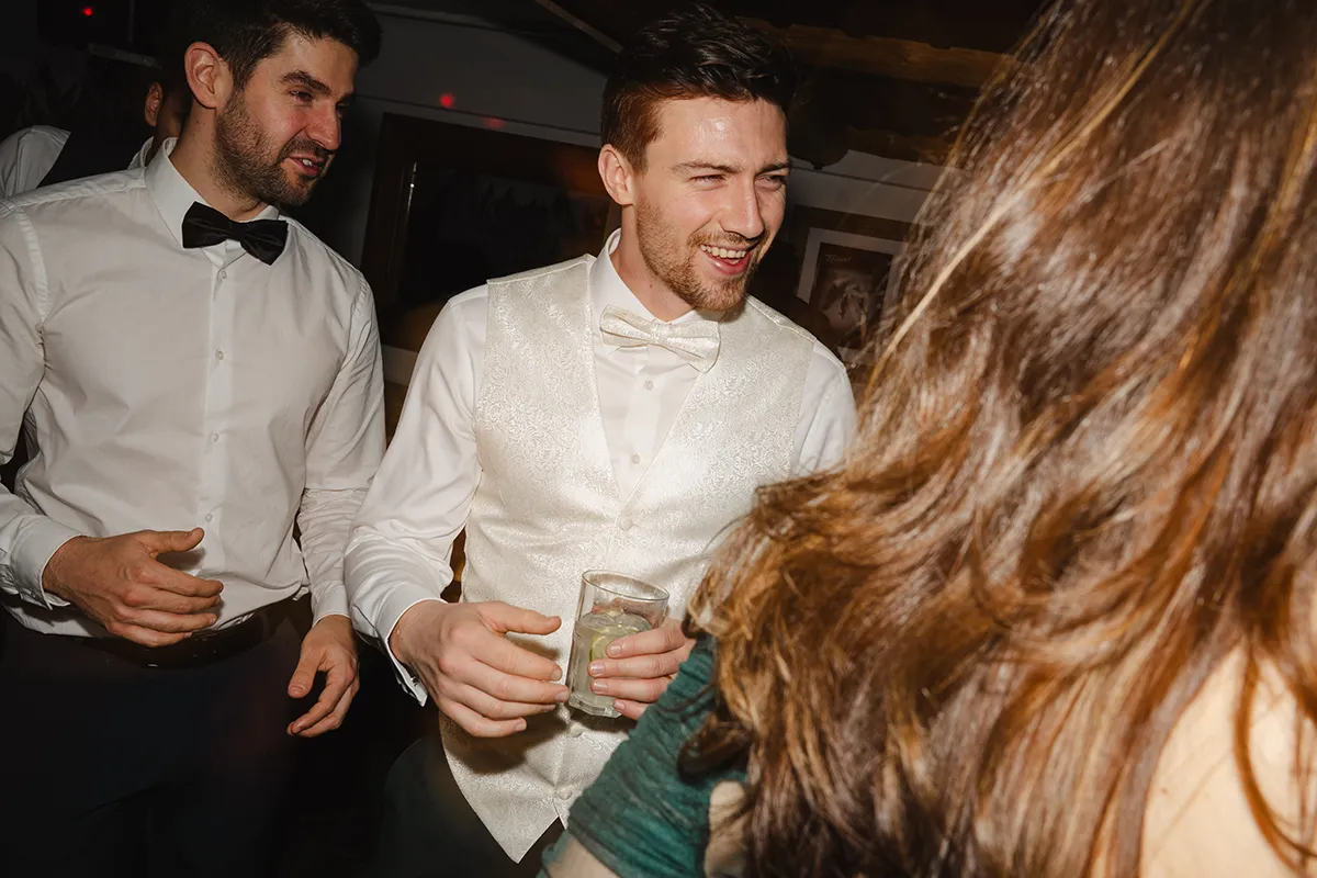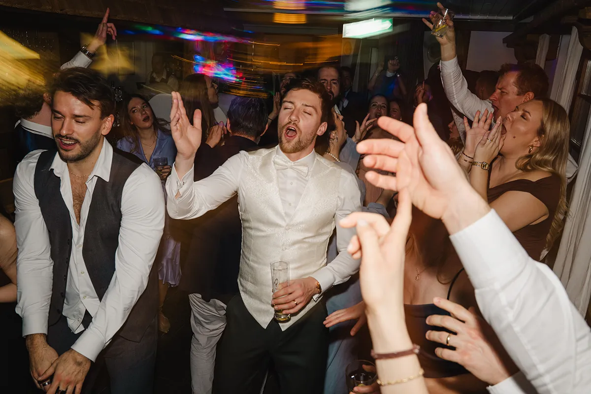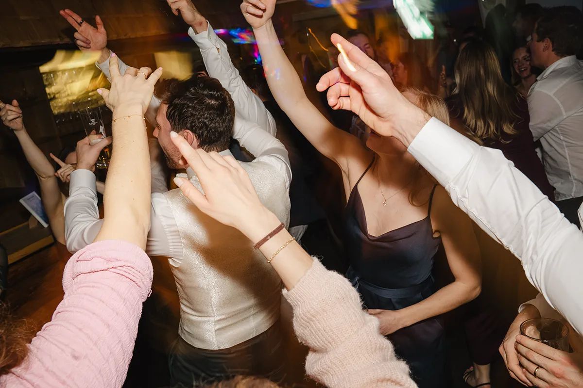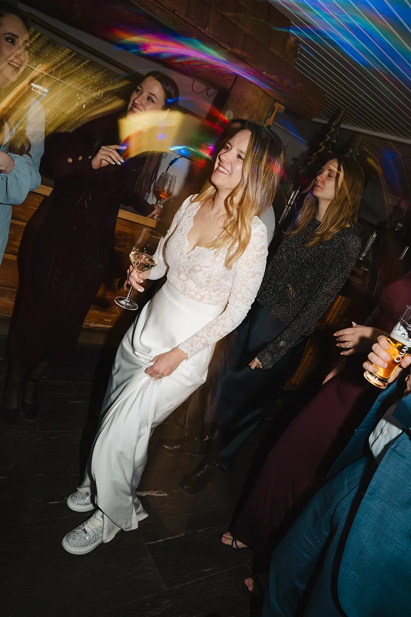 Bei den meisten Hochzeiten bin ich nach dem Tortenschneiden fertig. Hier durfte ich bis zum Schluss bleiben – und es hat so viel Spaß gemacht. Blitz auf die Kamera, rein in die Menge: Ich wurde zur Mitfeiernden, mitten im Geschehen, nicht nur Beobachterin.