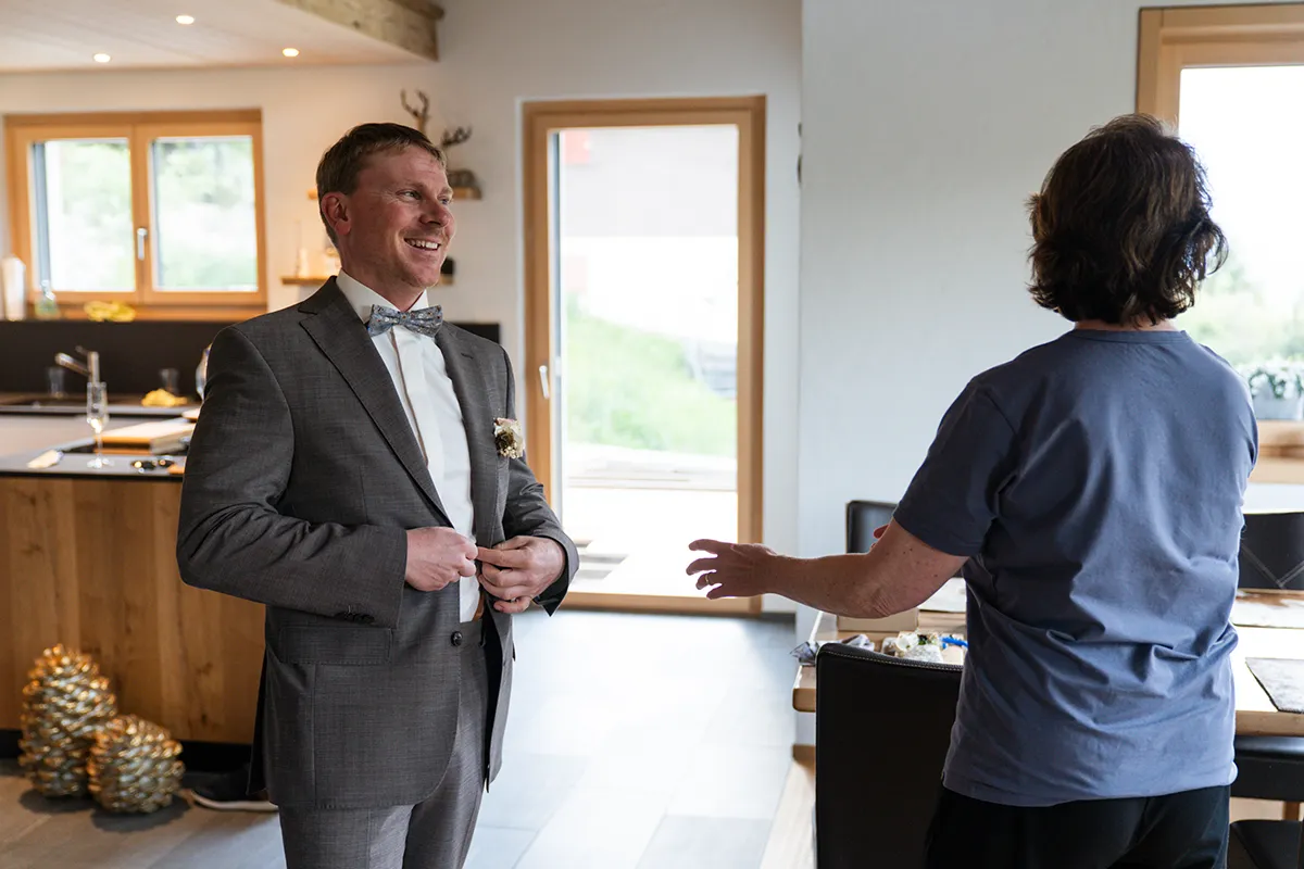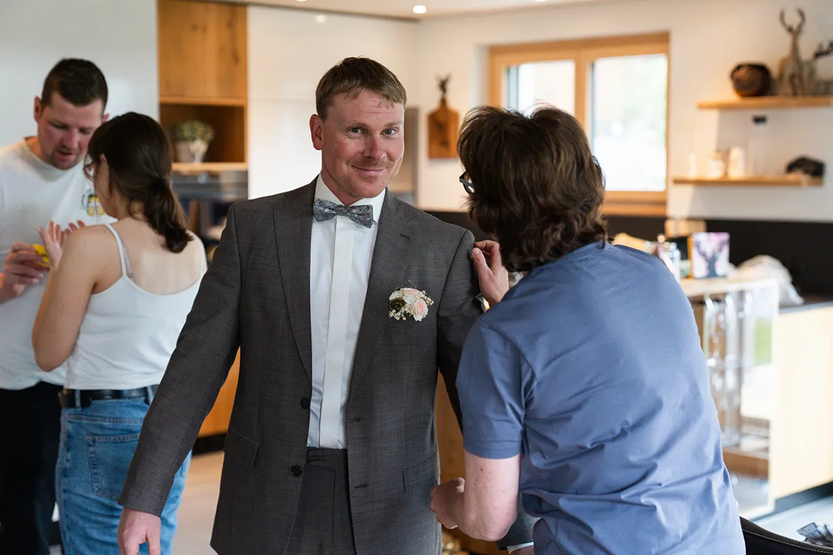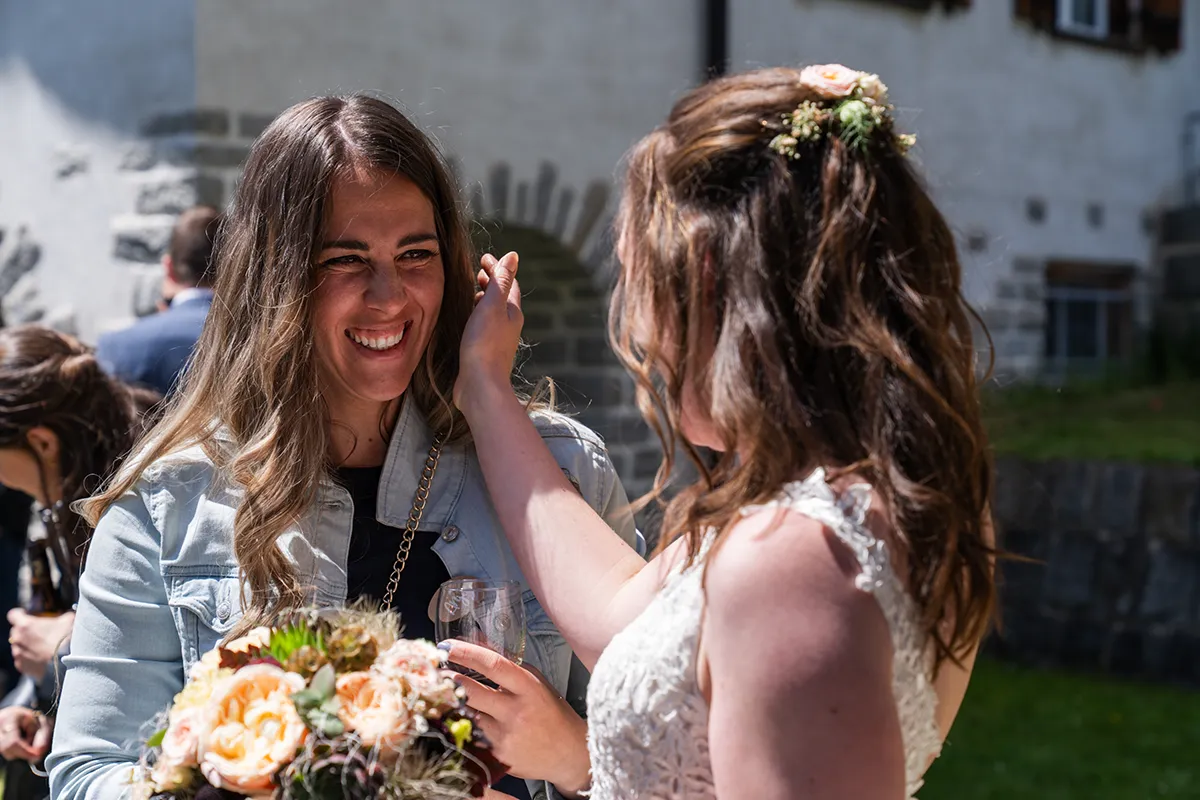 Das Brautpaar wünschte sich, dass ich bereits am Morgen bei den Vorbereitungen dabei bin – anschliessend den First Look, das Brautpaarshooting und dann die kirchliche Trauung in der Bergkirche von Selva. Wieder einmal war ich an wunderschönen Hochzeitslocations in Graubünden unterwegs und durfte ein weiteres Brautpaar durch ihren Tag begleiten. Ein toller Job! 🙂