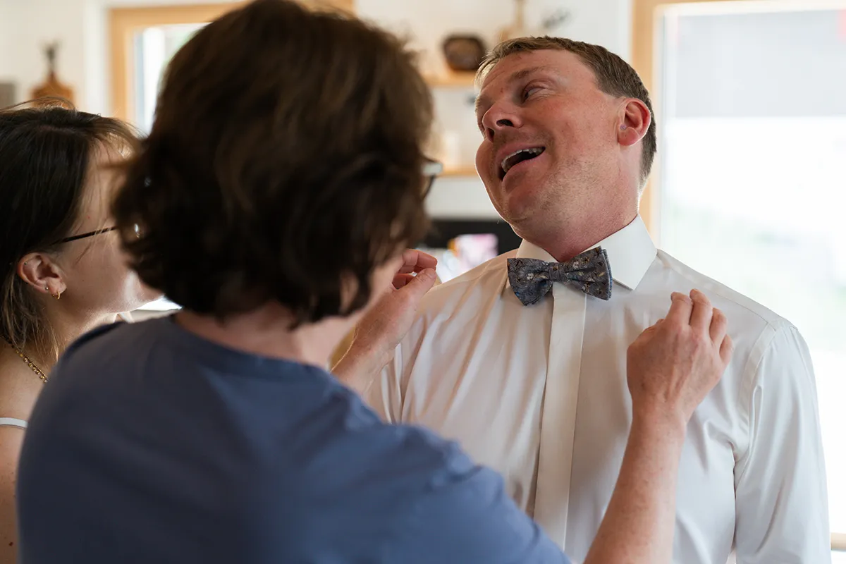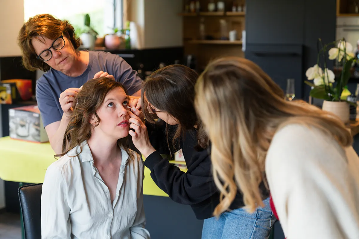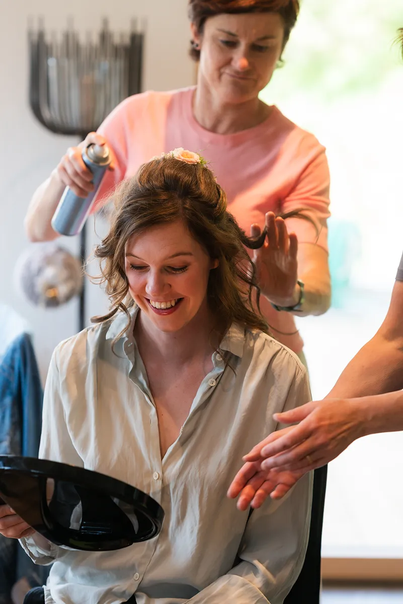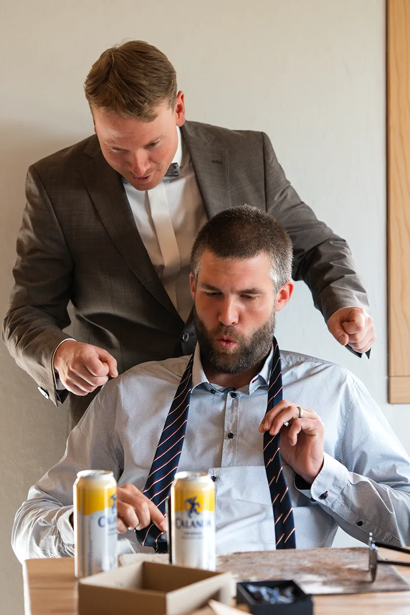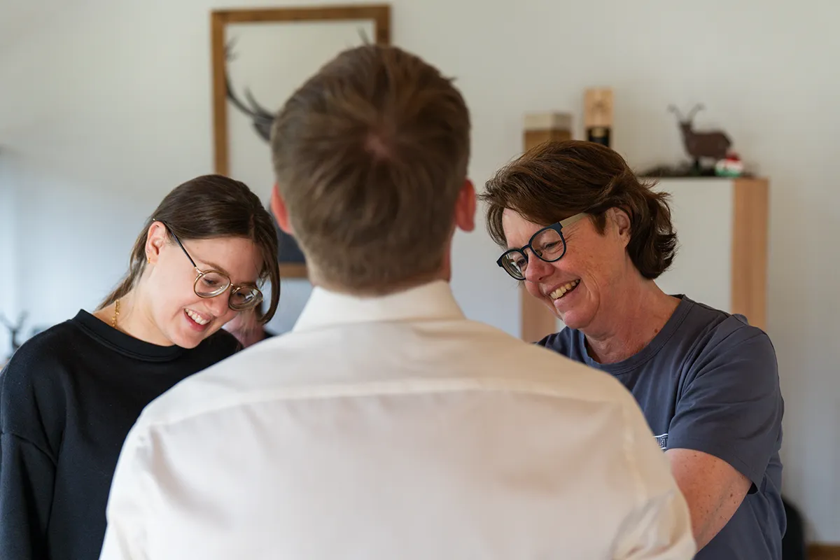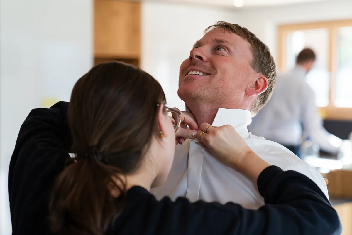 Es ist etwas ganz Besonderes, bei den ersten Stunden des Tages dabei zu sein: Das Paar ist gerade aufgestanden – manche trinken Kaffee, andere vielleicht schon ein Glas Sekt. Eltern, Geschwister und Trauzeugen sind oft anwesend. Die Frisur wird gemacht, das Hochzeitskleid vom Bügel genommen, Manschettenknöpfe geschlossen, Schuhe angezogen. Es ist wie ein kleines Ritual, bei dem jedem Handgriff seine eigene Bedeutung zukommt.